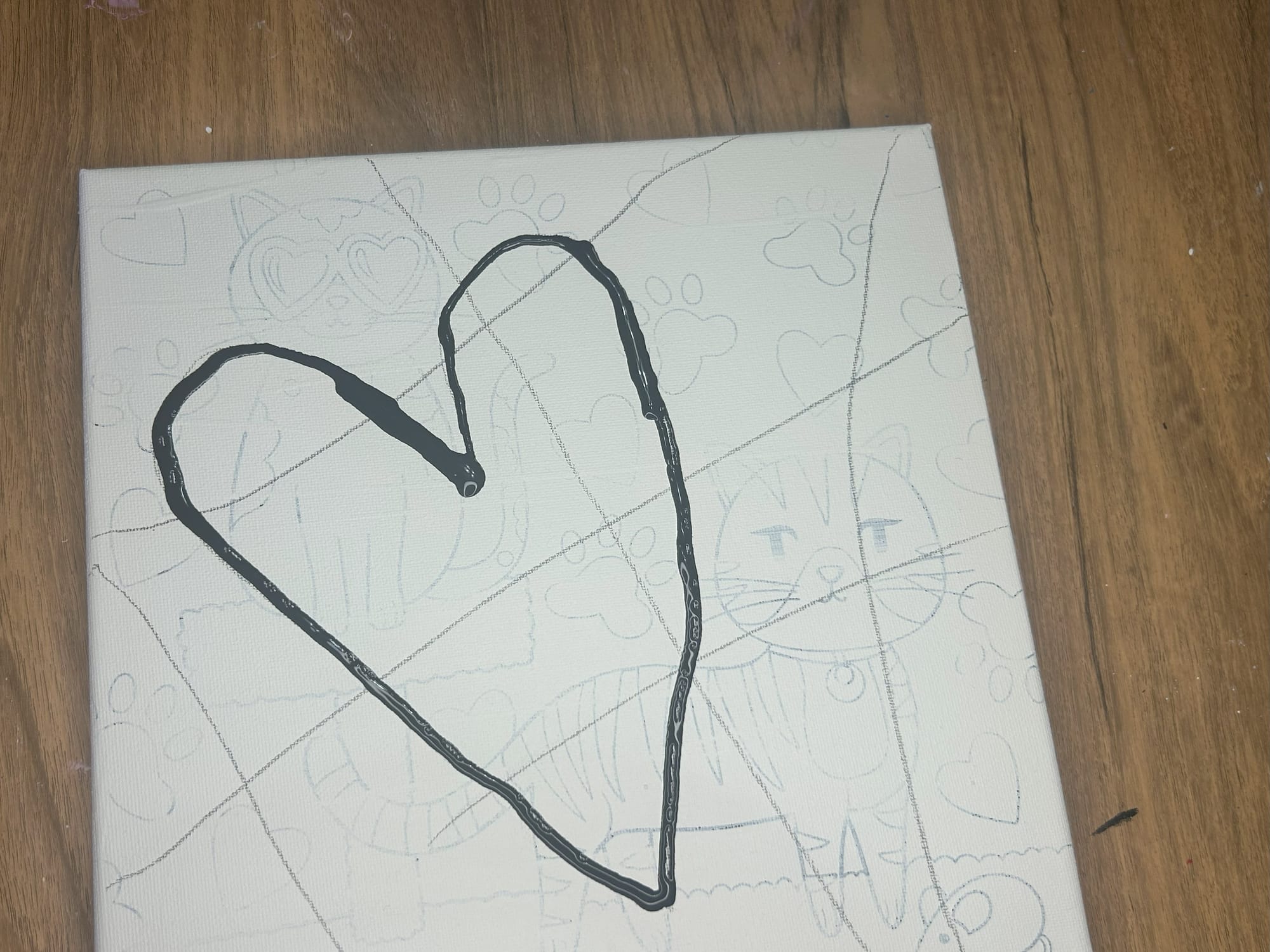 To make this Romero Britto–inspired art, draw a heart on a art canvas. Then, draw black lines through the shape and the rest of the canvas.