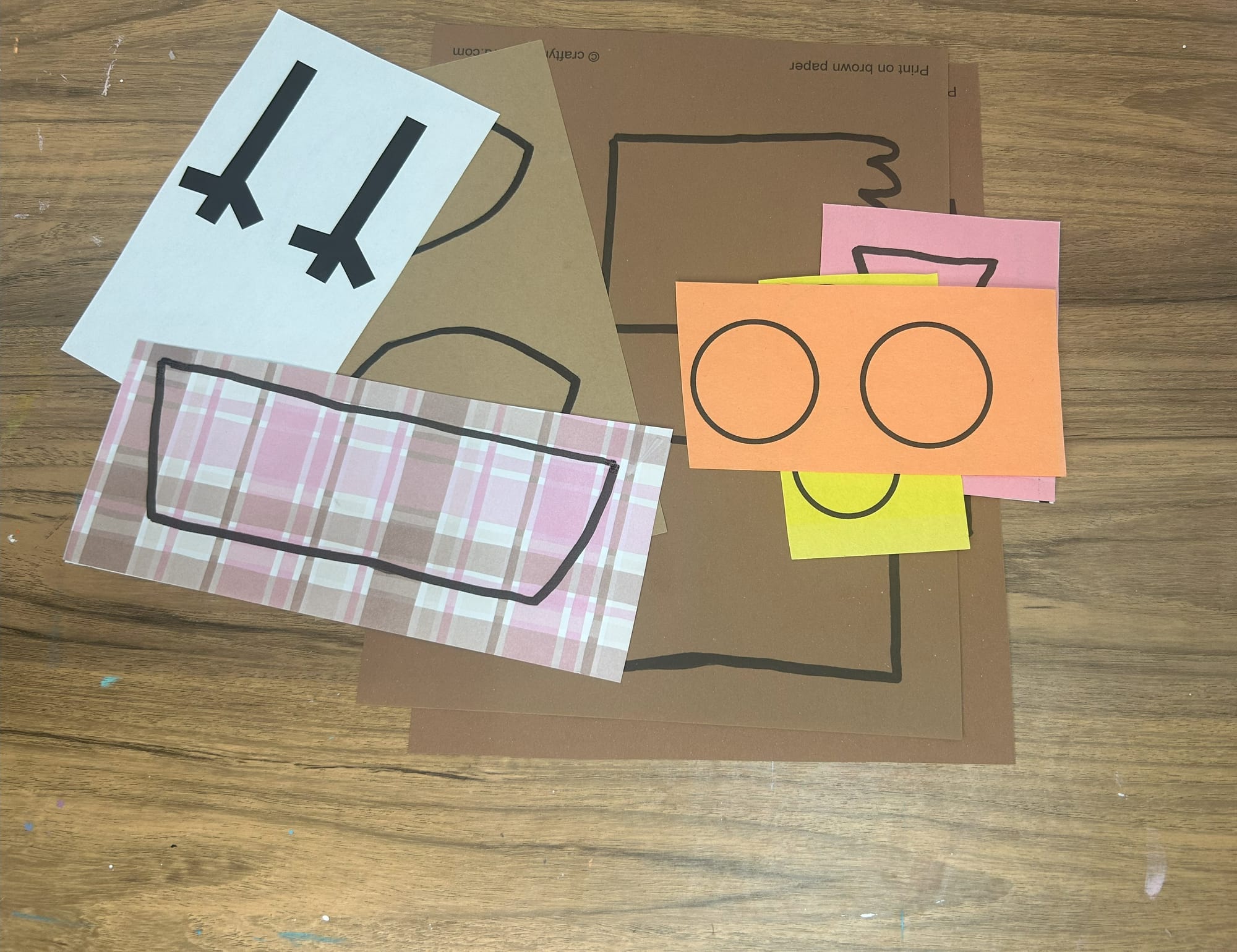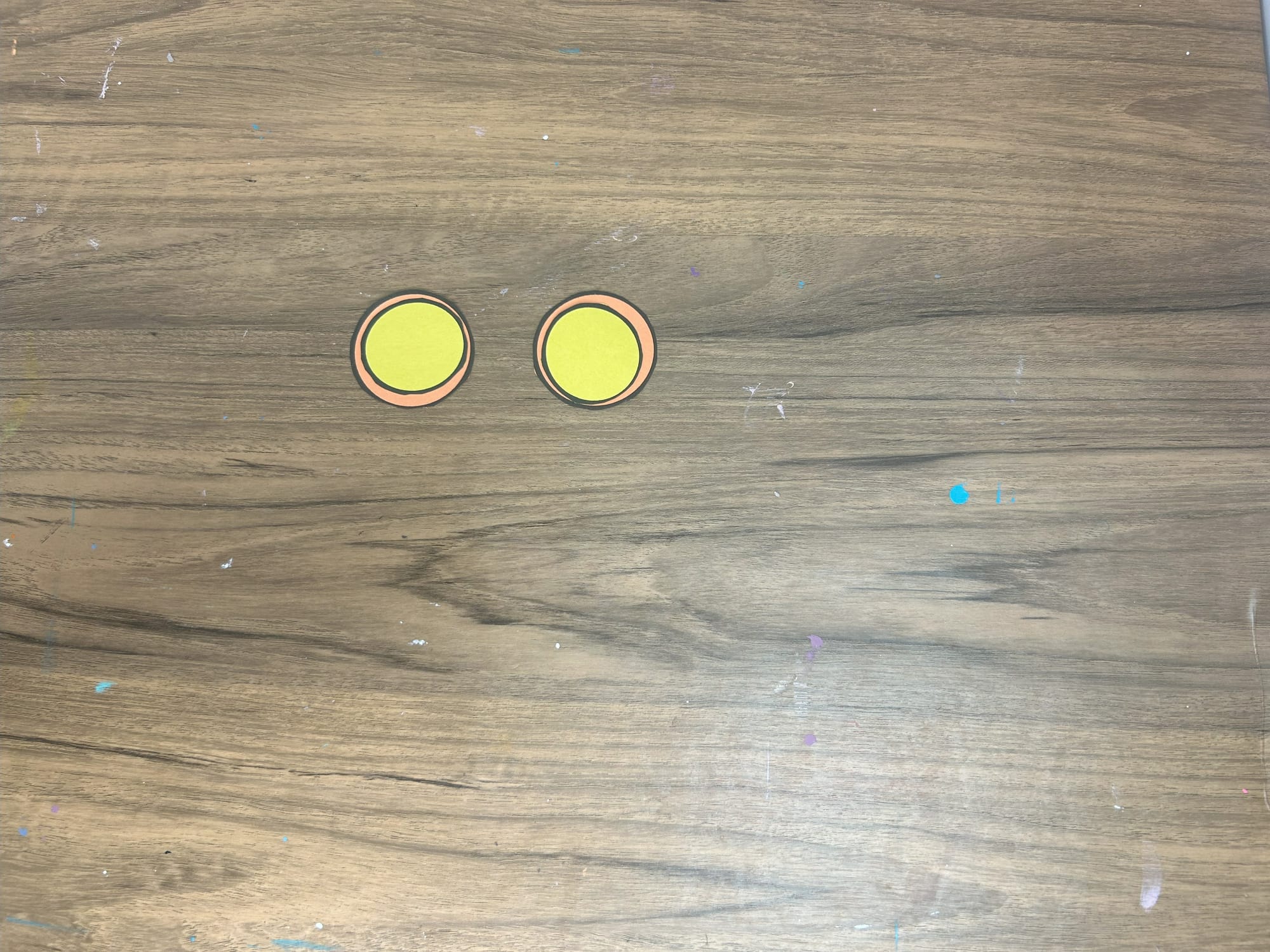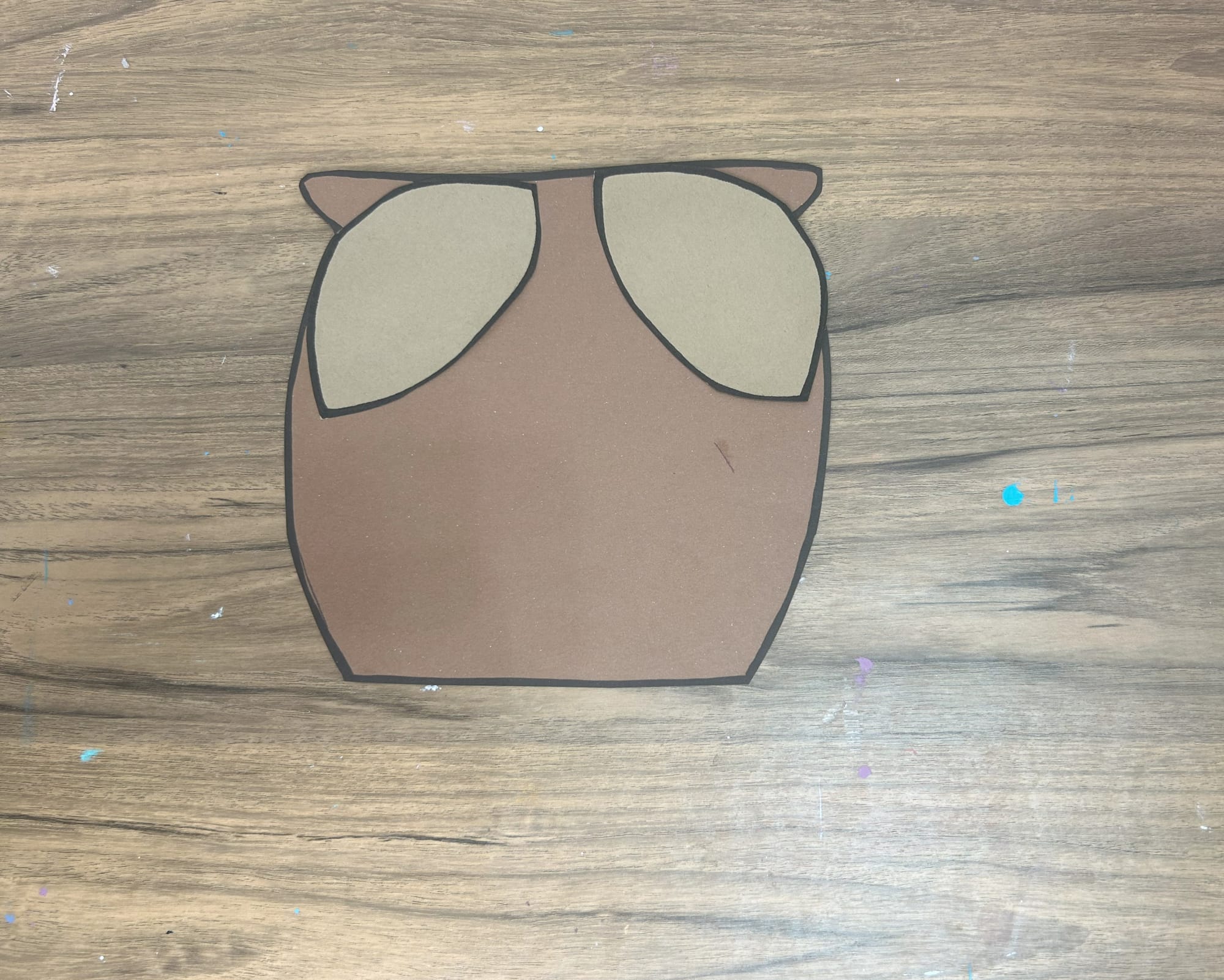 Next, to make the body, glue the lighter brown eye pieces to the darker brown body. After, create the eyes by gluing the circles on top on each other in size order. Glue the eyes onto the light brown eye pieces.