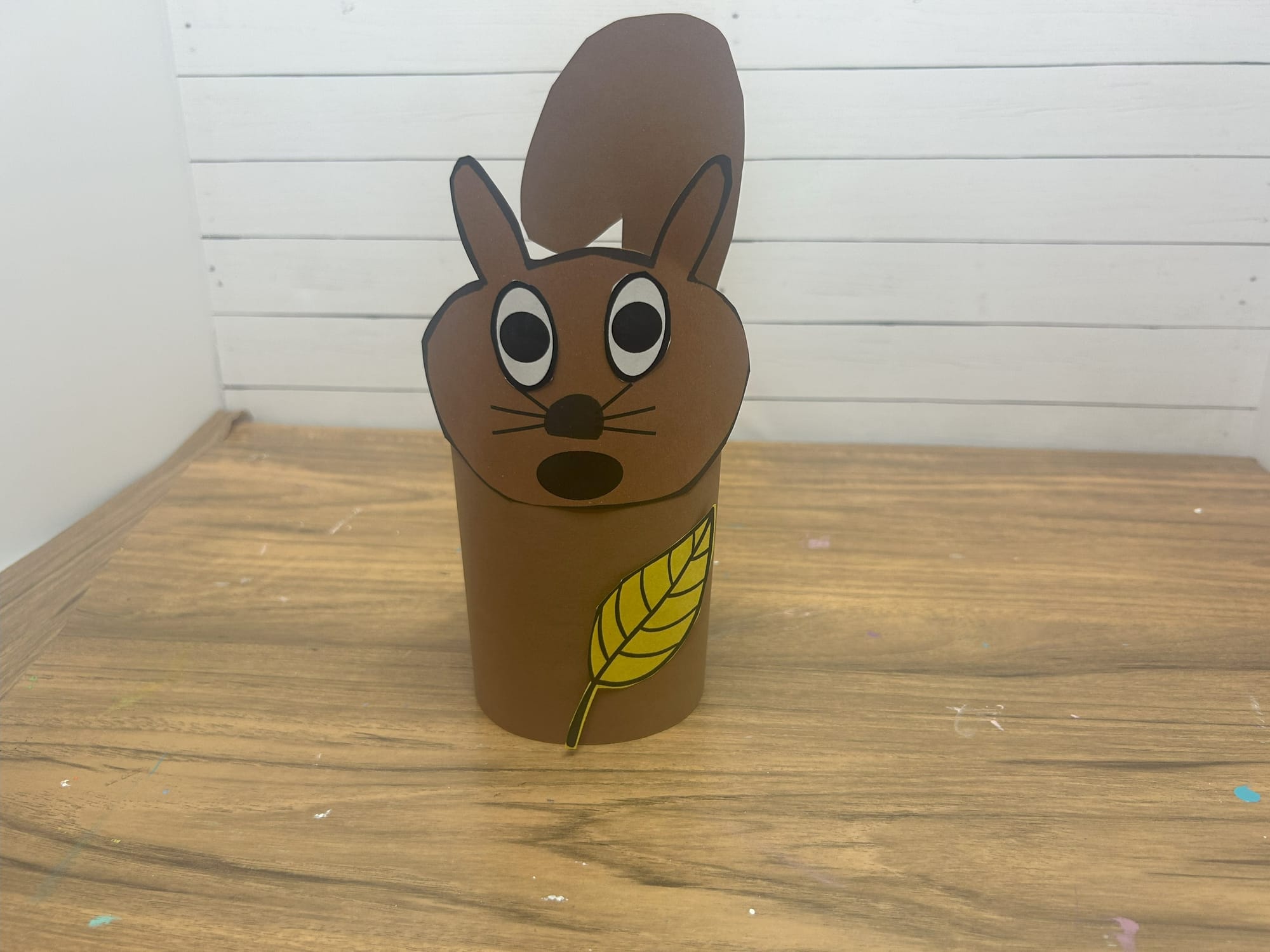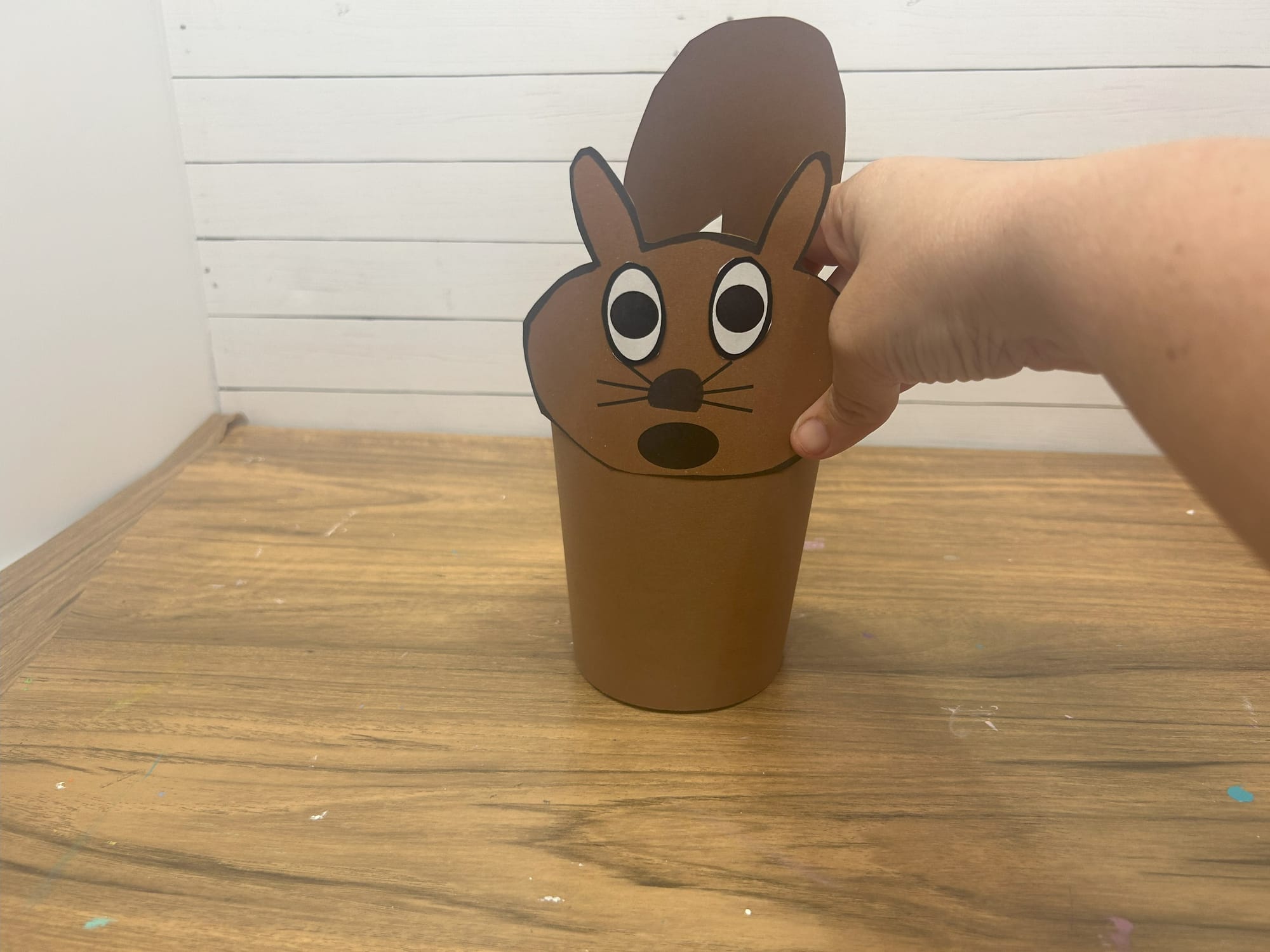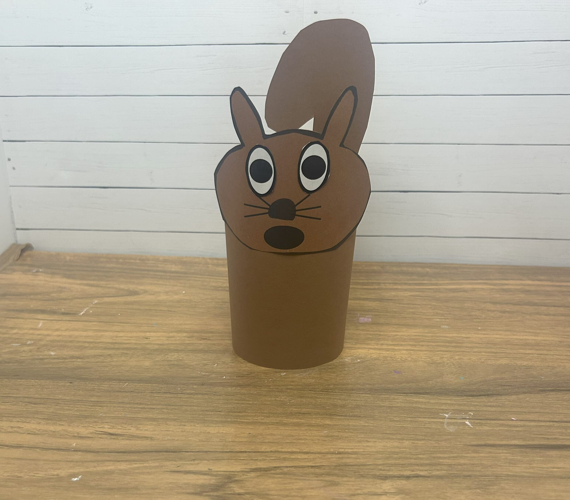 Roll the piece of brown paper into a tube. Glue or staple the end together, this will be the body of the squirrel. If you use glue, give some time for the glue to dry.