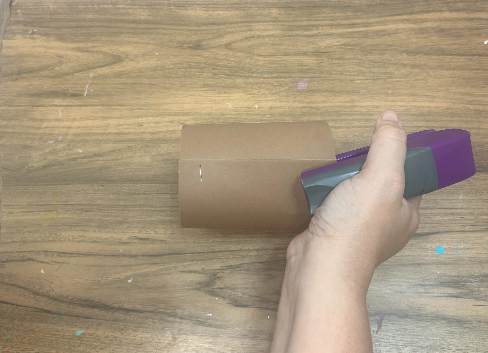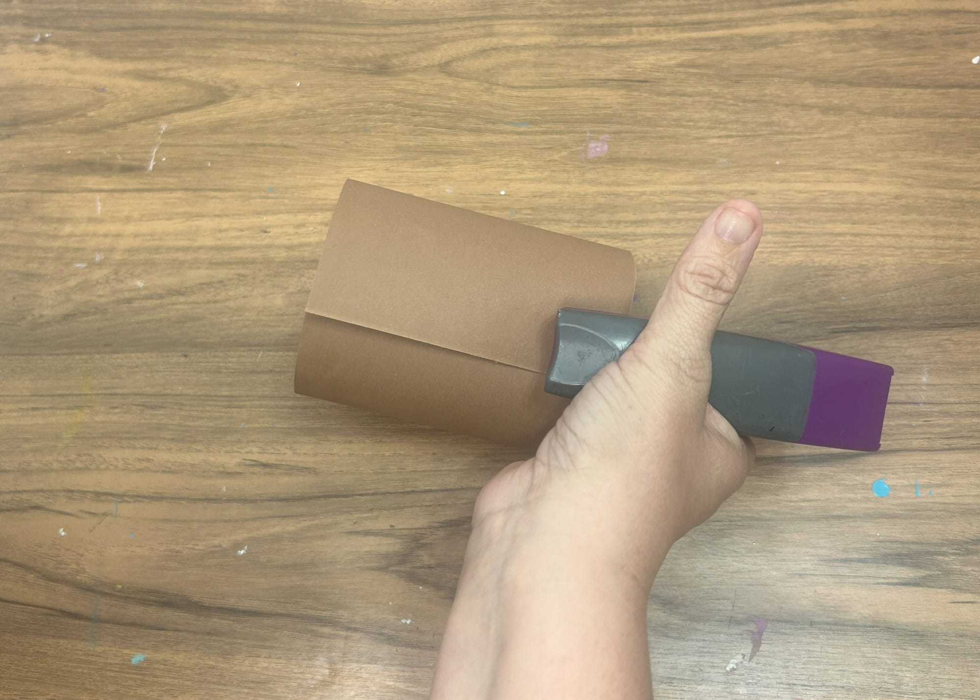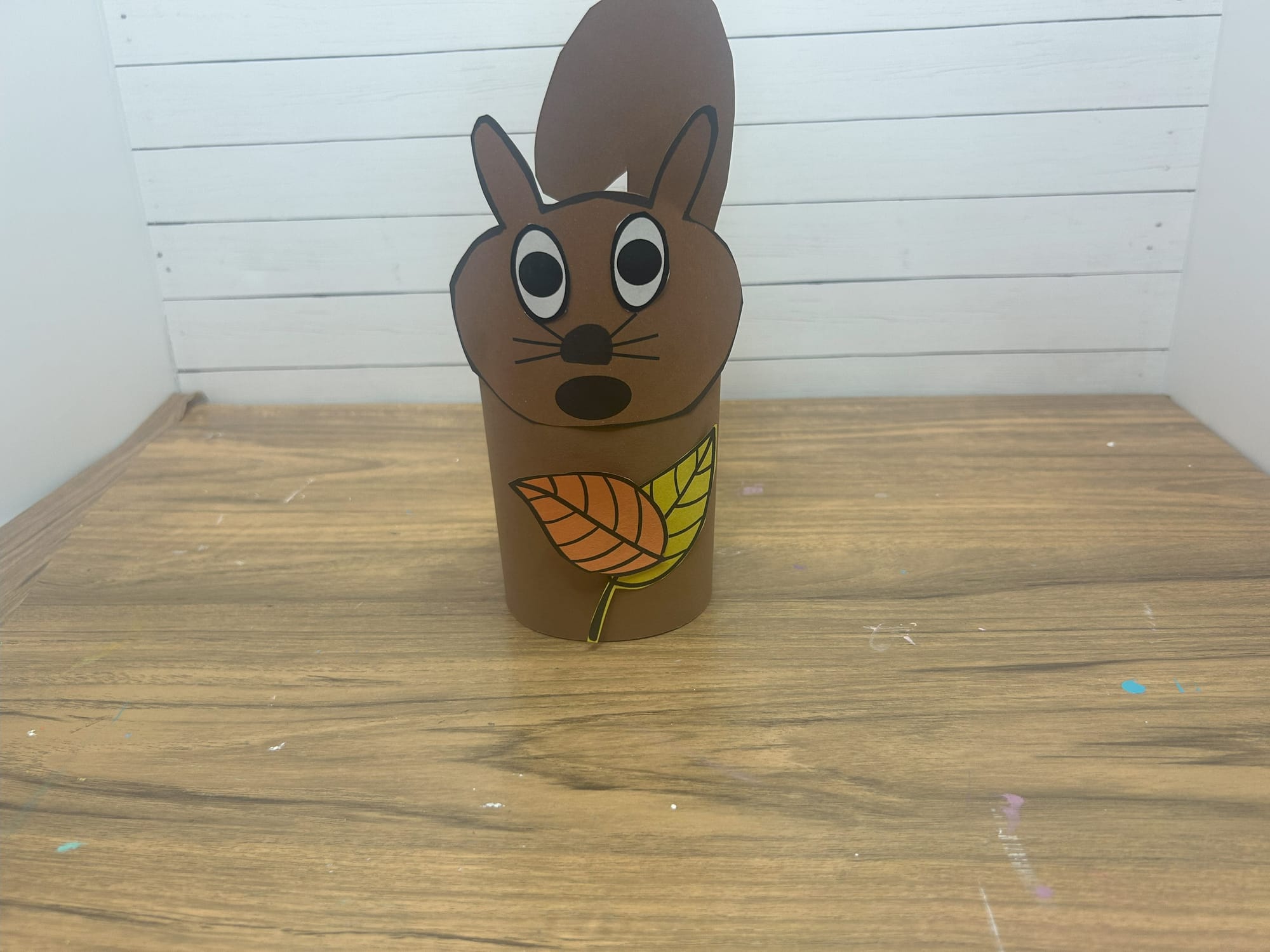 Roll the piece of brown paper into a tube. Glue or staple the end together, this will be the body of the squirrel. If you use glue, give some time for the glue to dry.
