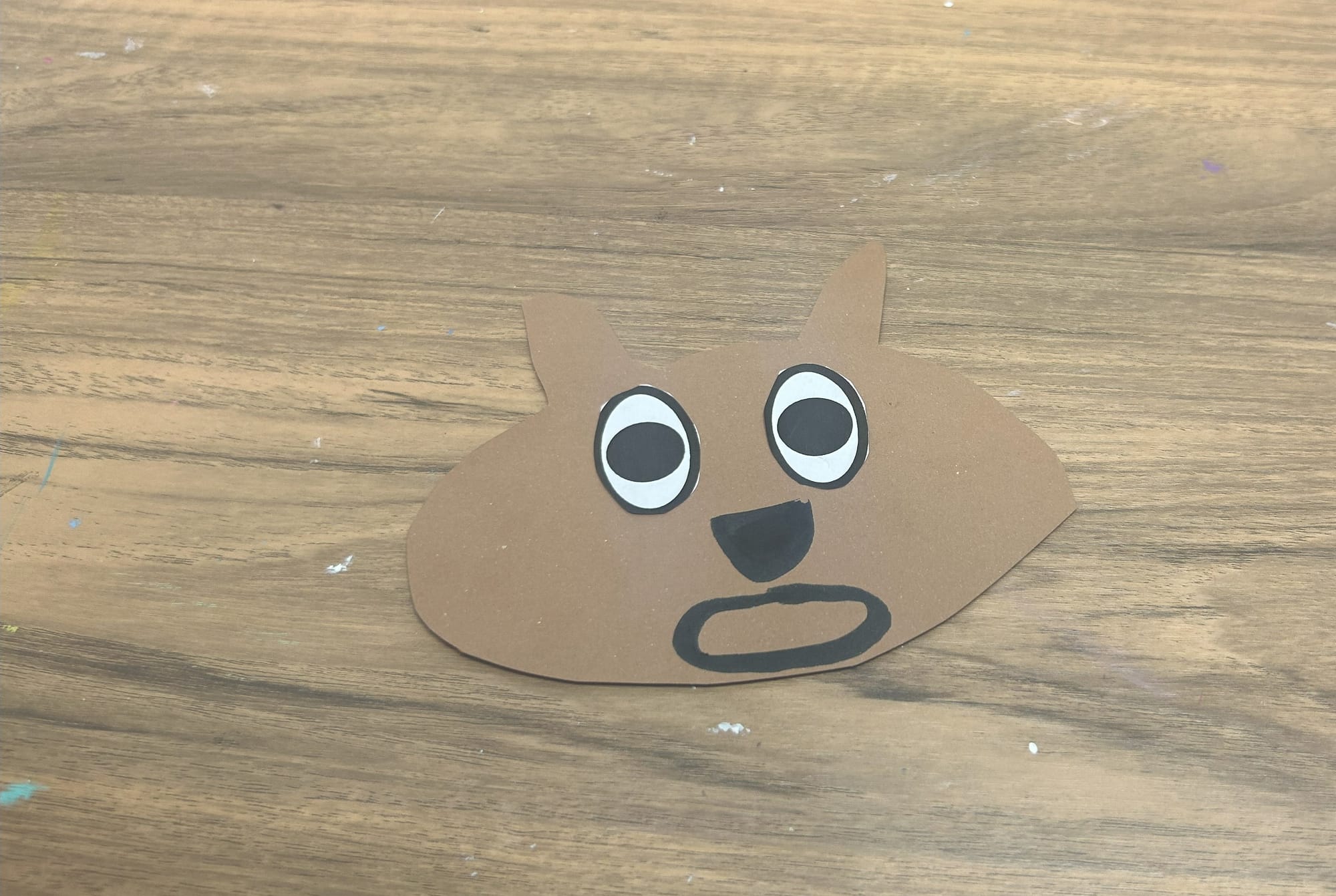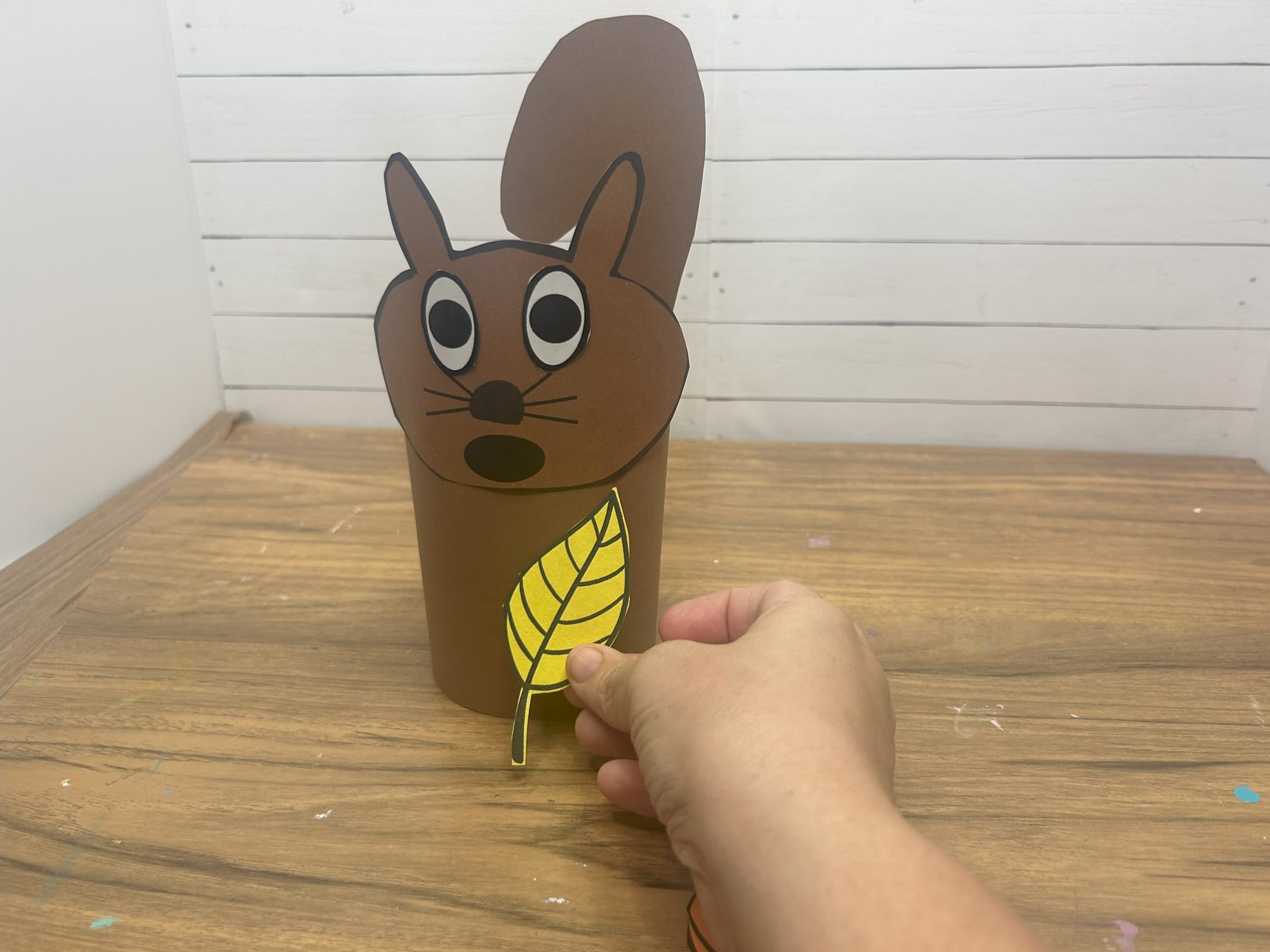 The hands are last to be attached. Glue them on the side of the leaves like squirrel is holding them.