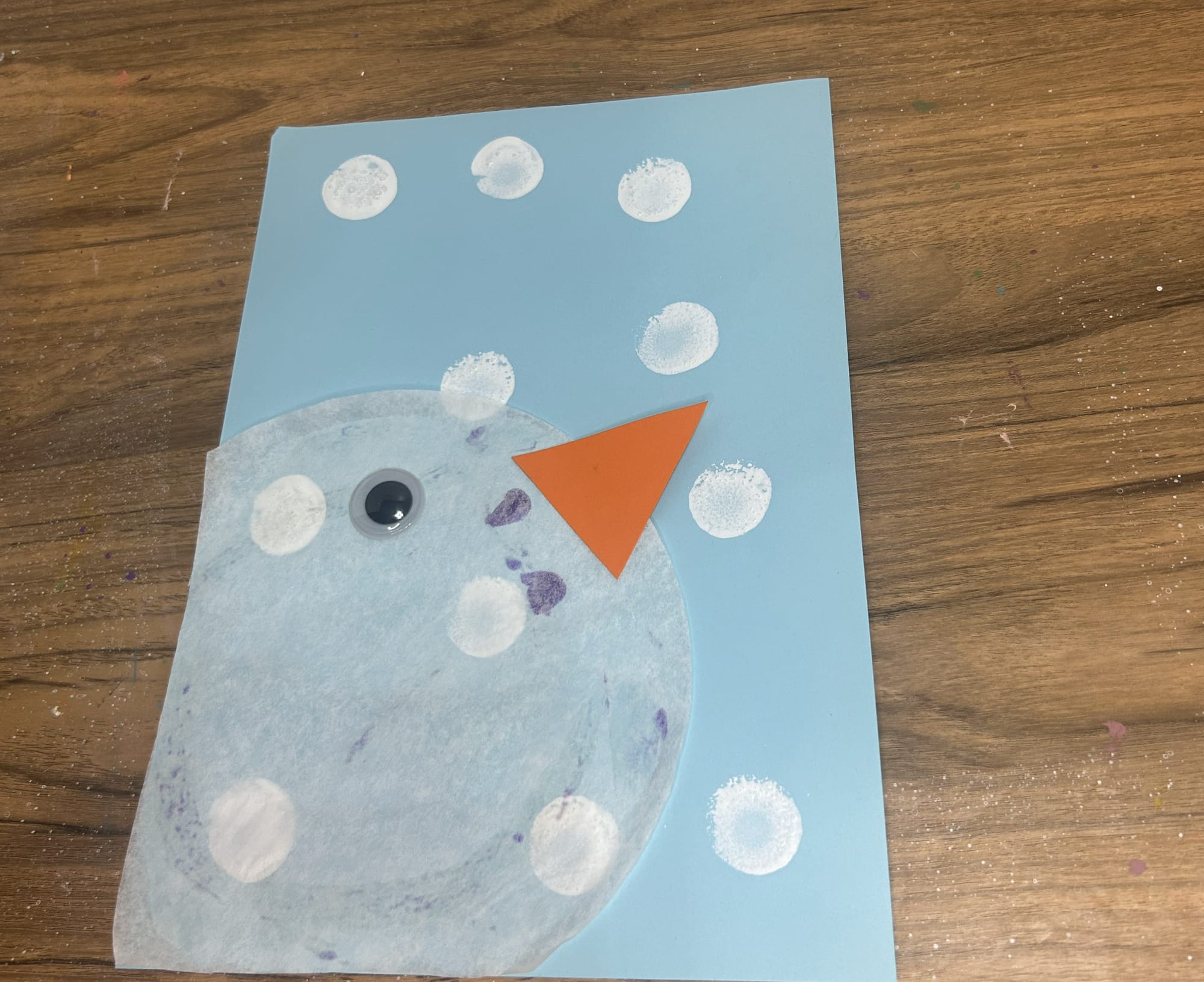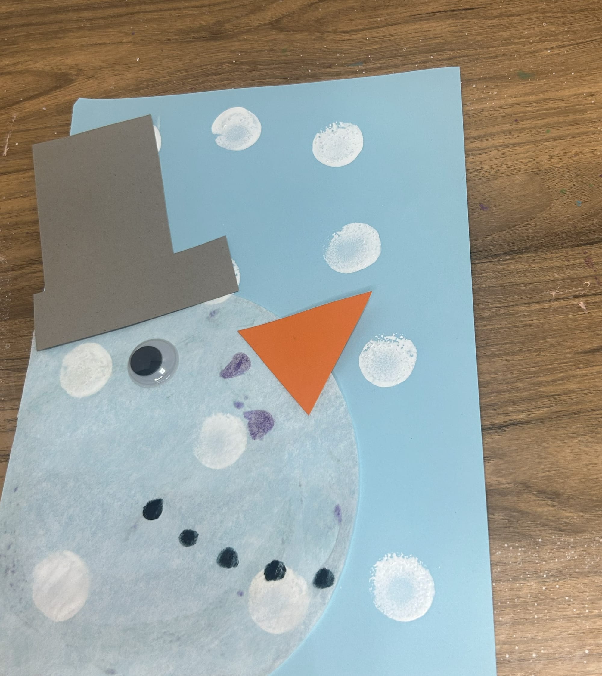 Use a pencil eraser to add snow dots to the background paper.