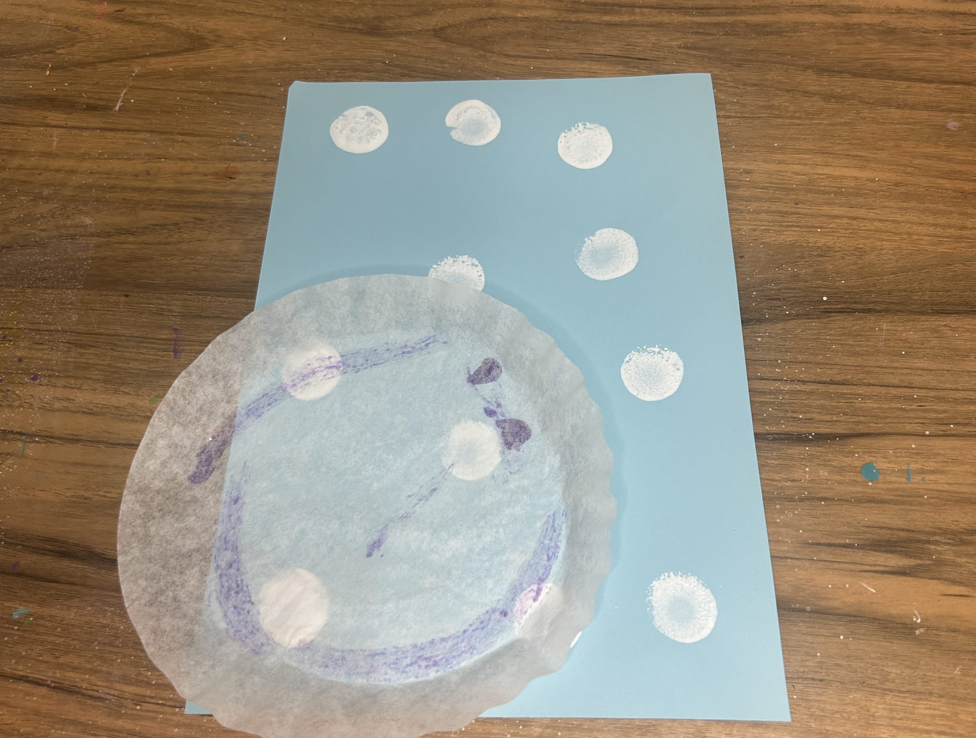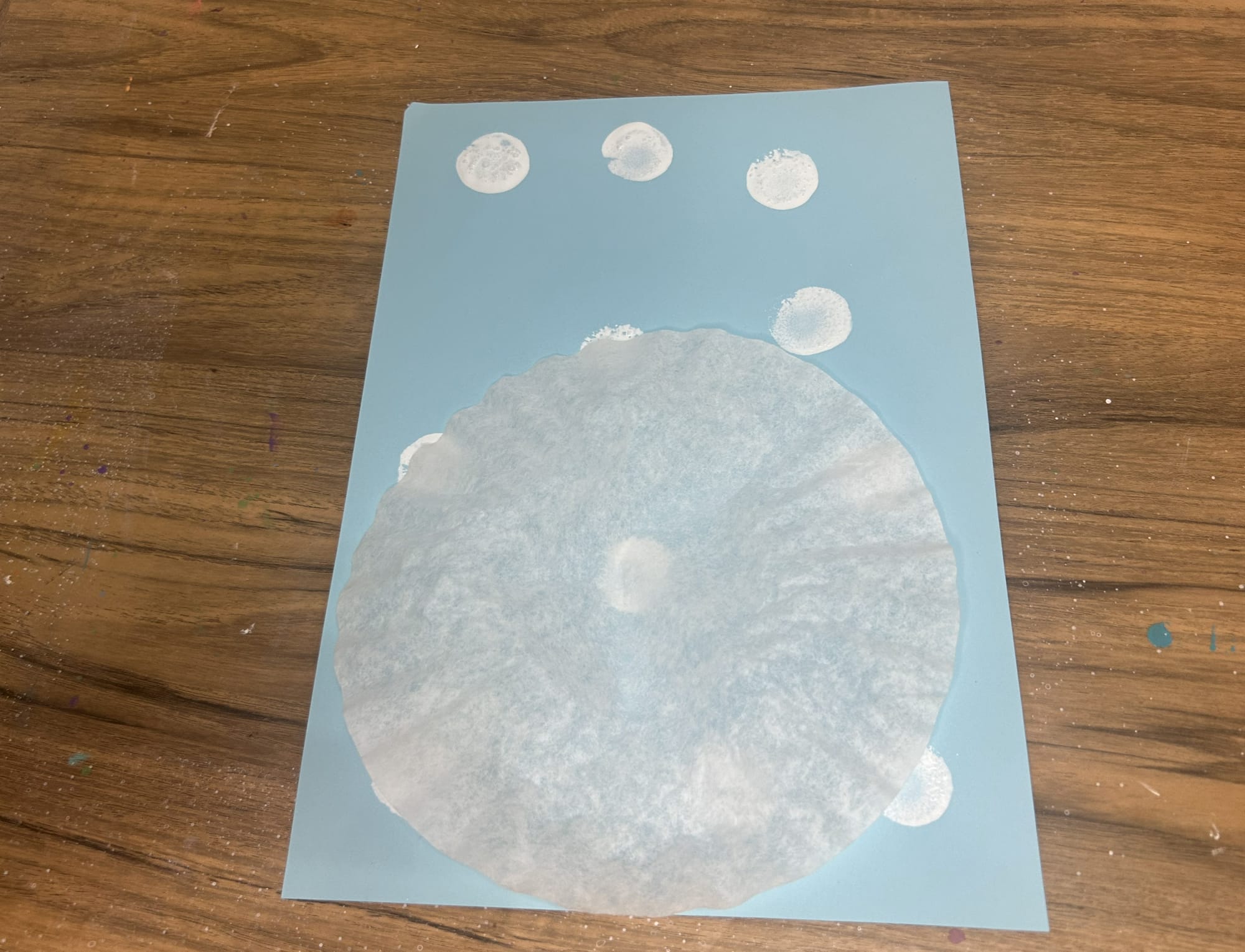Add coffee filter to the snowy background paper.