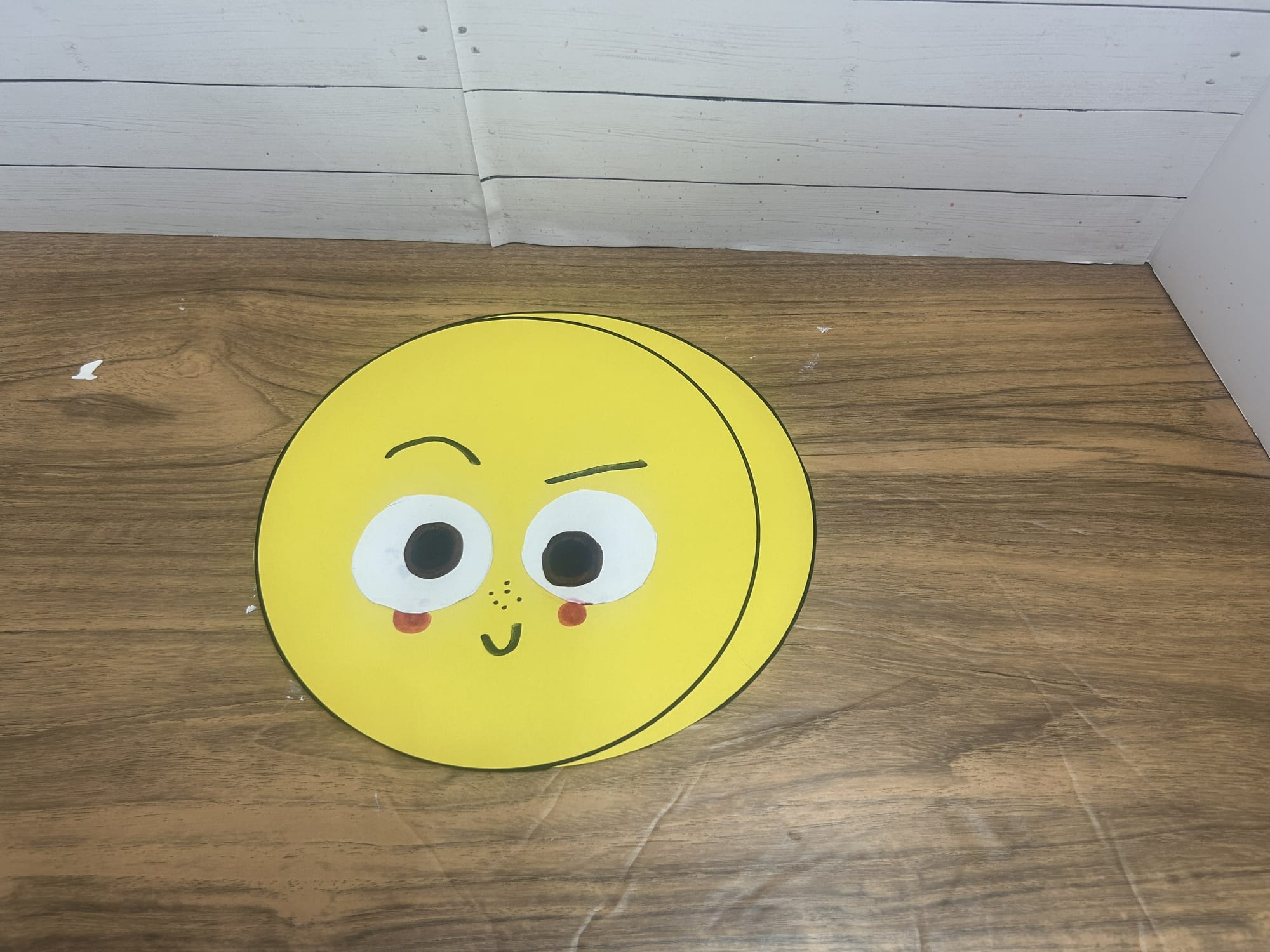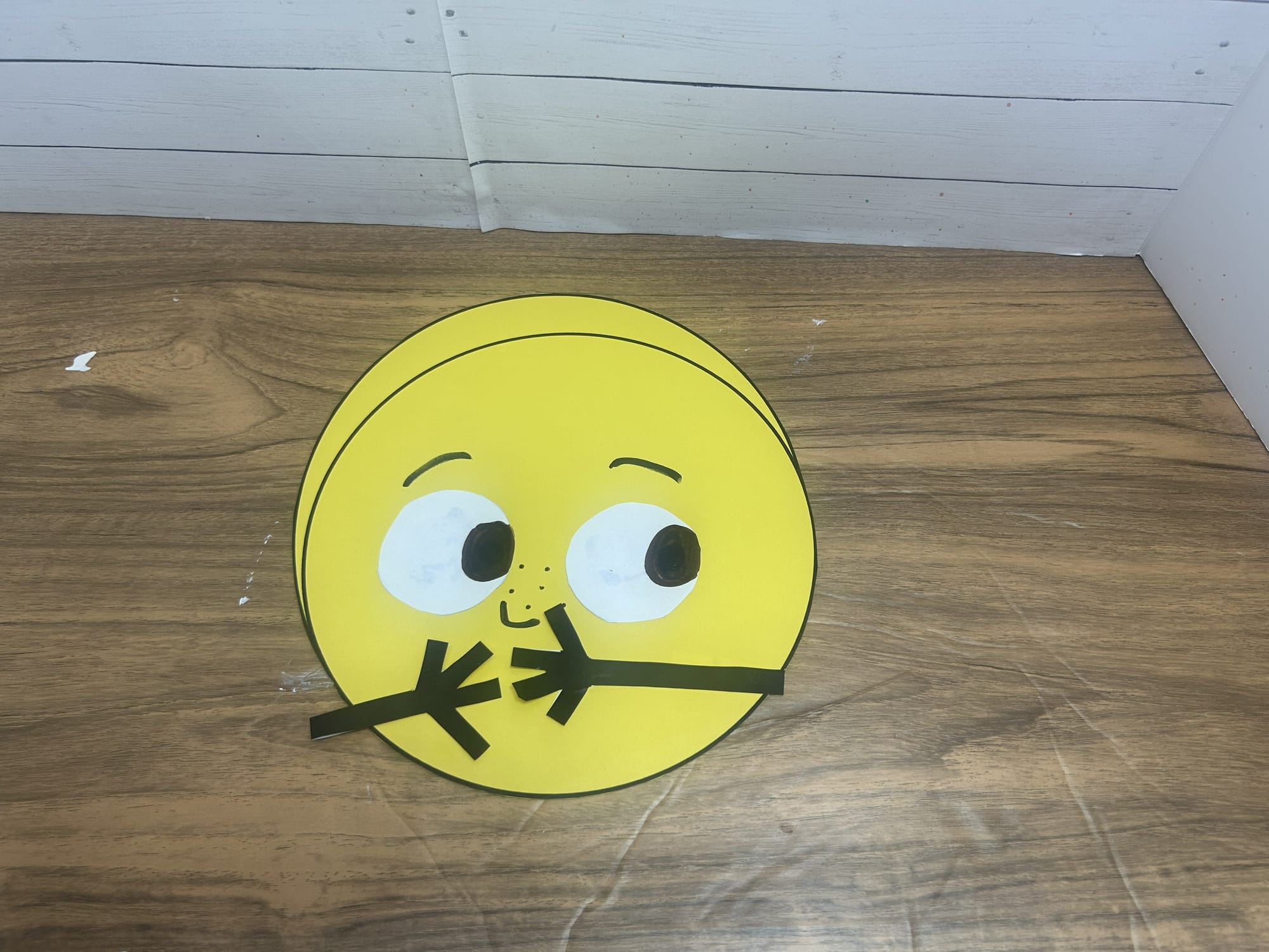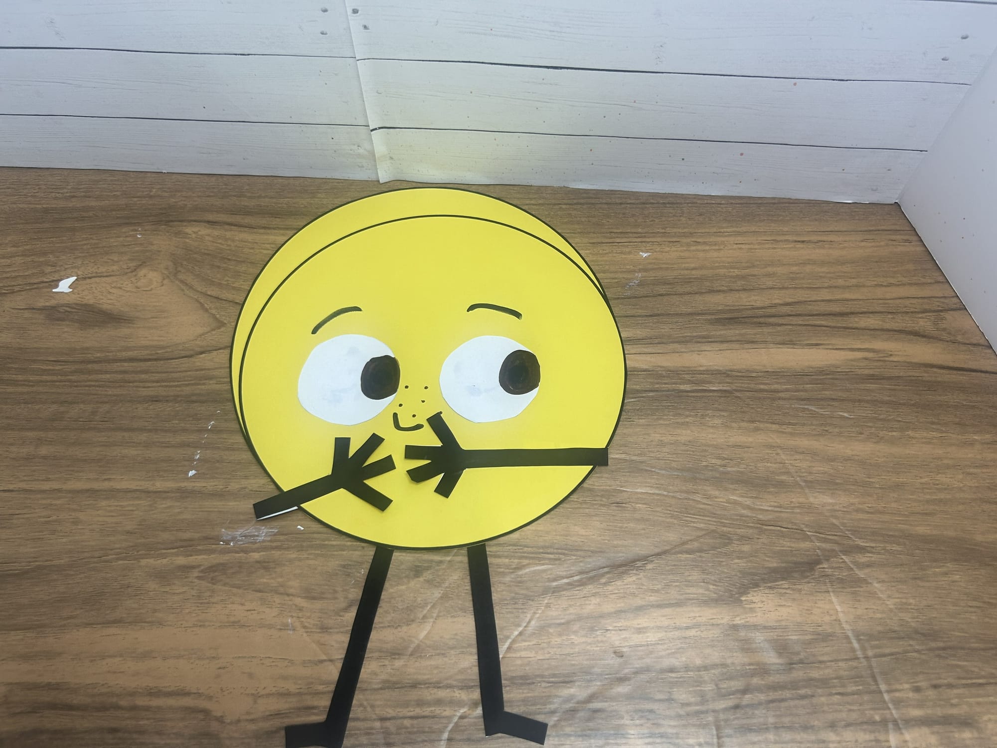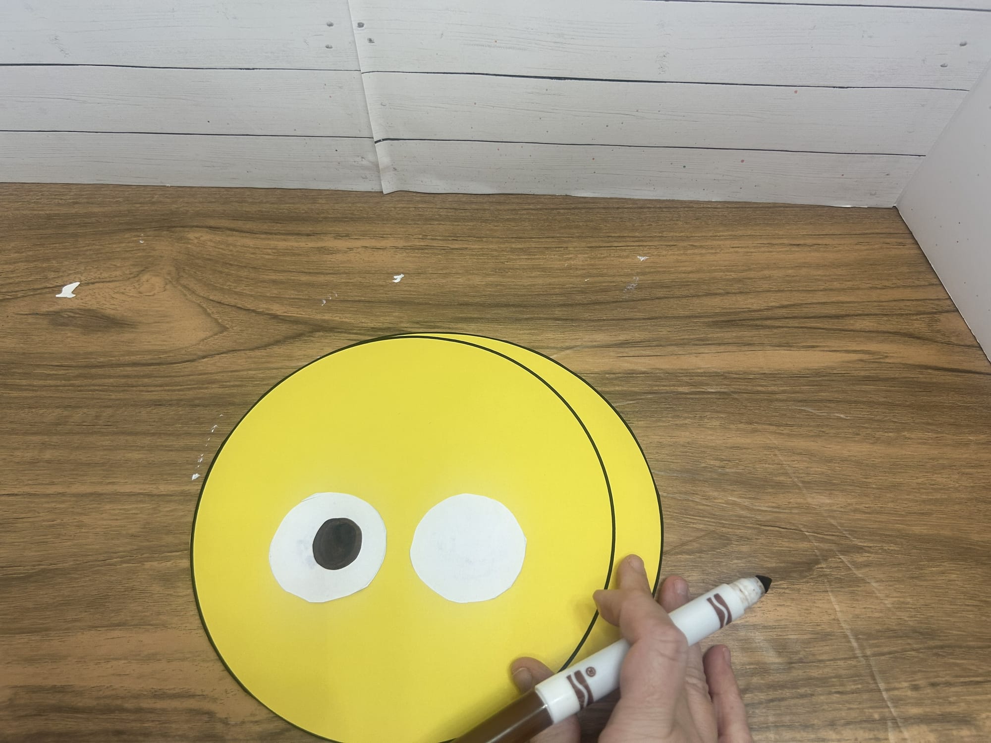 Use a black marker to add a mouth to The Big Cheese. Add facial details including dots on the face and pink cheeks.
