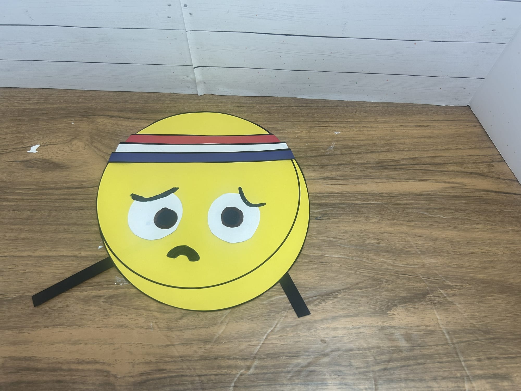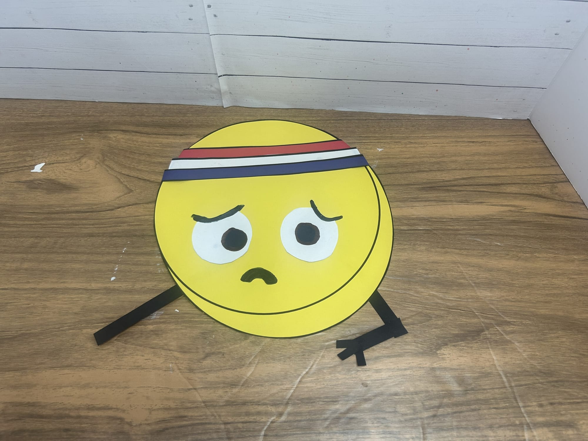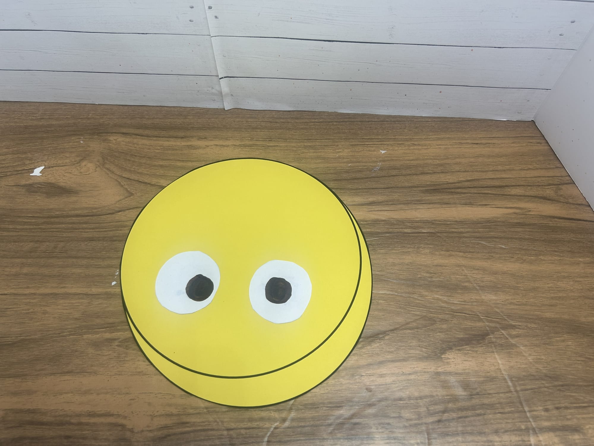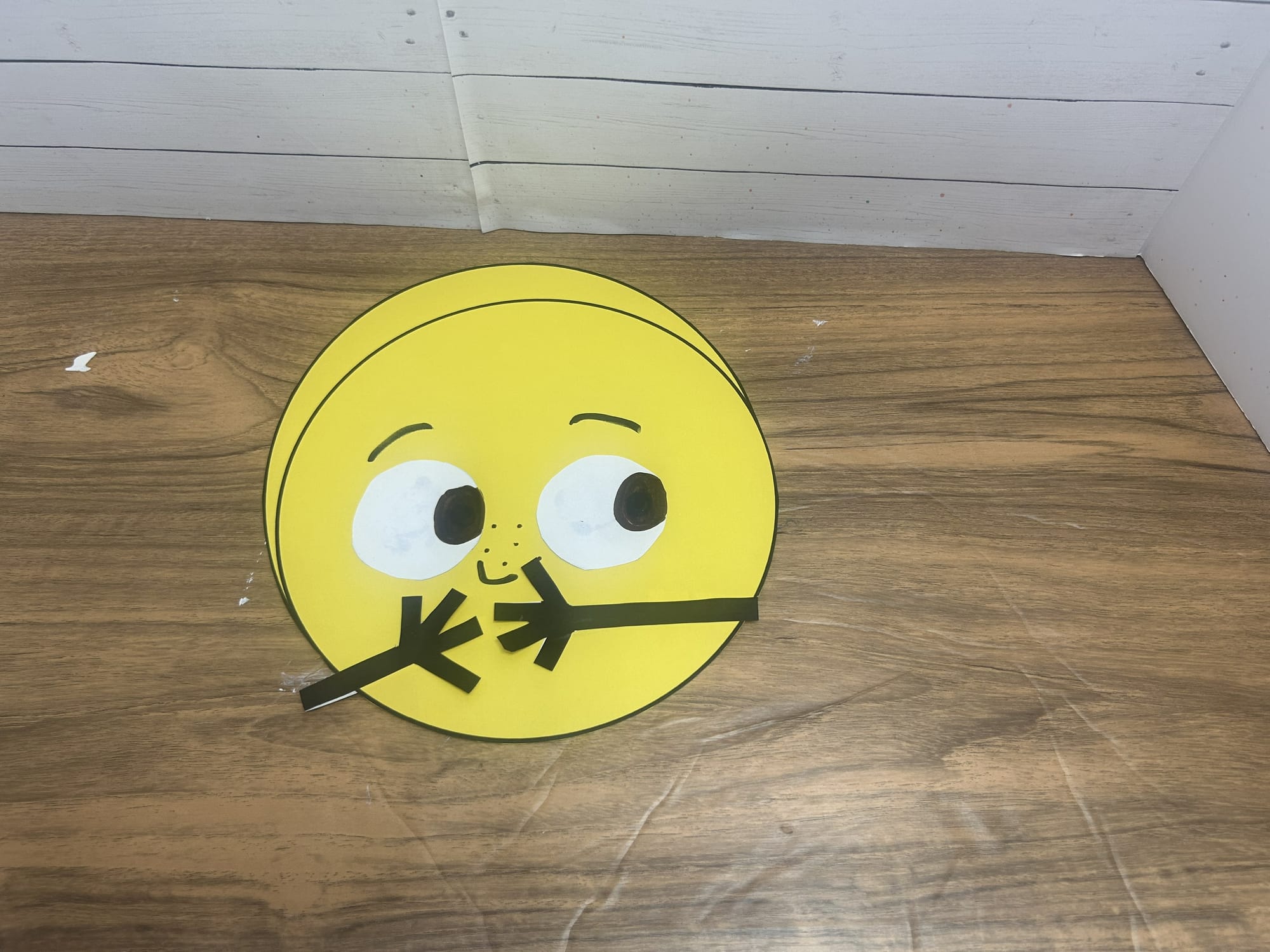 Use a black marker to add a mouth to The Big Cheese. Add facial details including dots on the face and pink cheeks.
