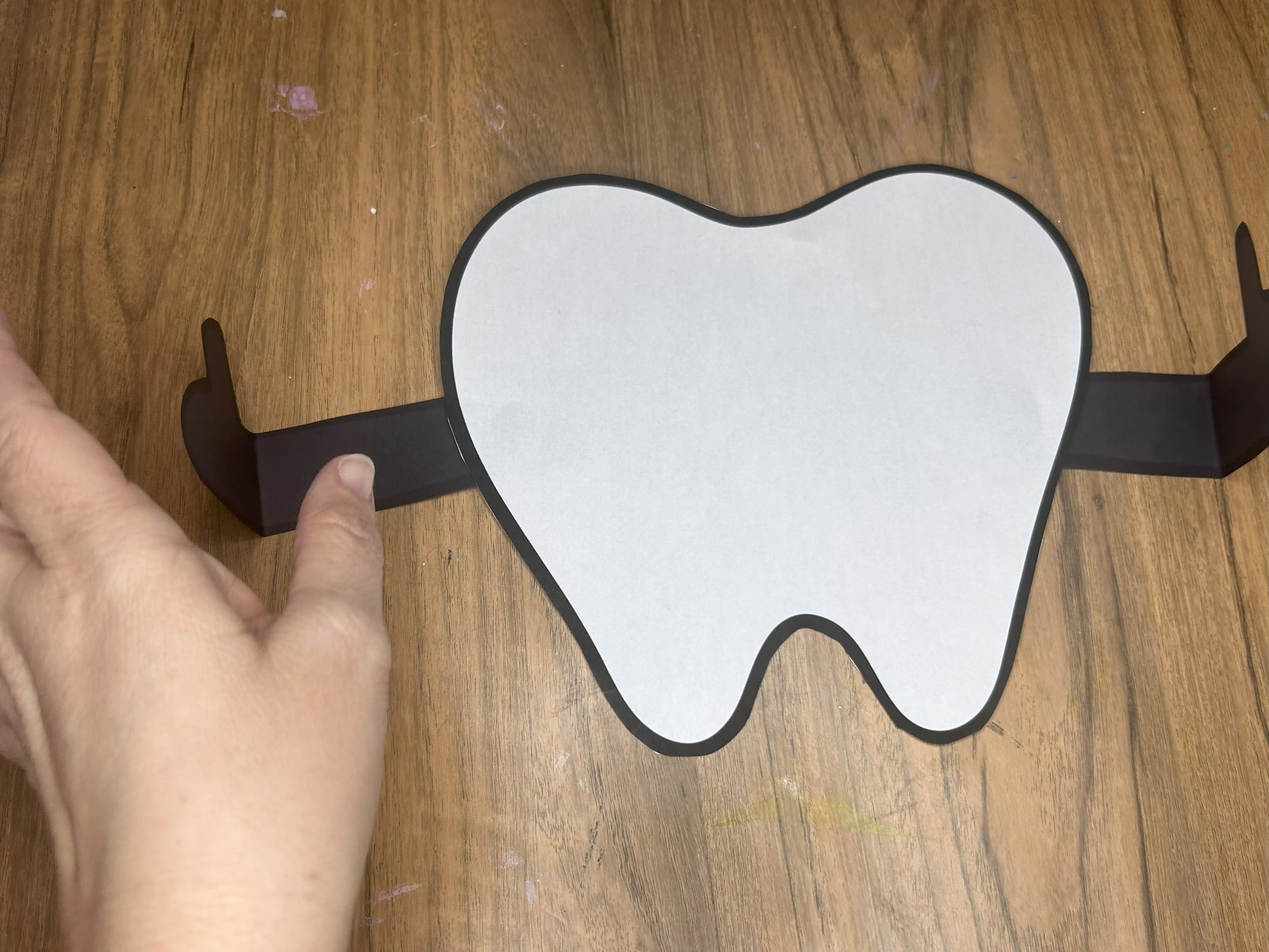 Now you are ready to glue the arms onto the side of the tooth. Attach the arms and then bend the arms by folding them in half.